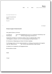 Einspruch gegen eine Anonymverfügung/Strafverfügung - Falschparken