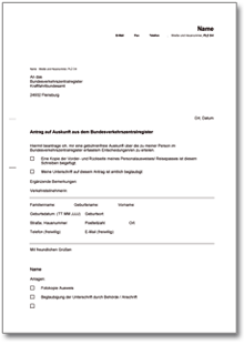 Antrag auf Auskunft aus dem deutschen Verkehrszentralregister